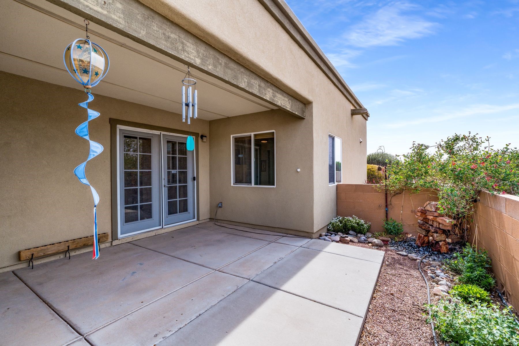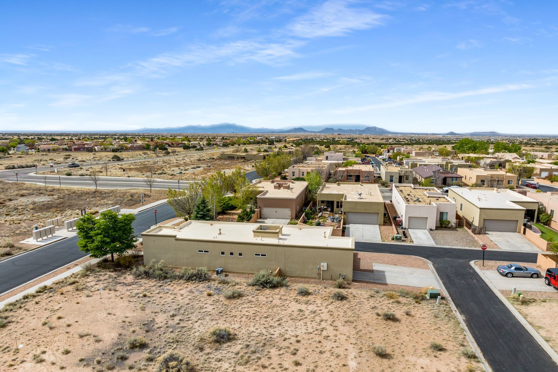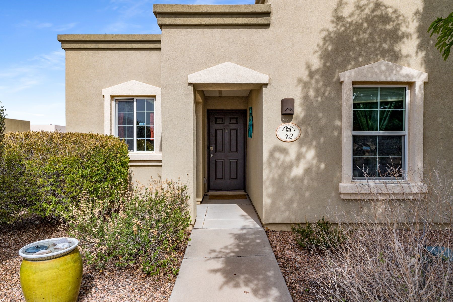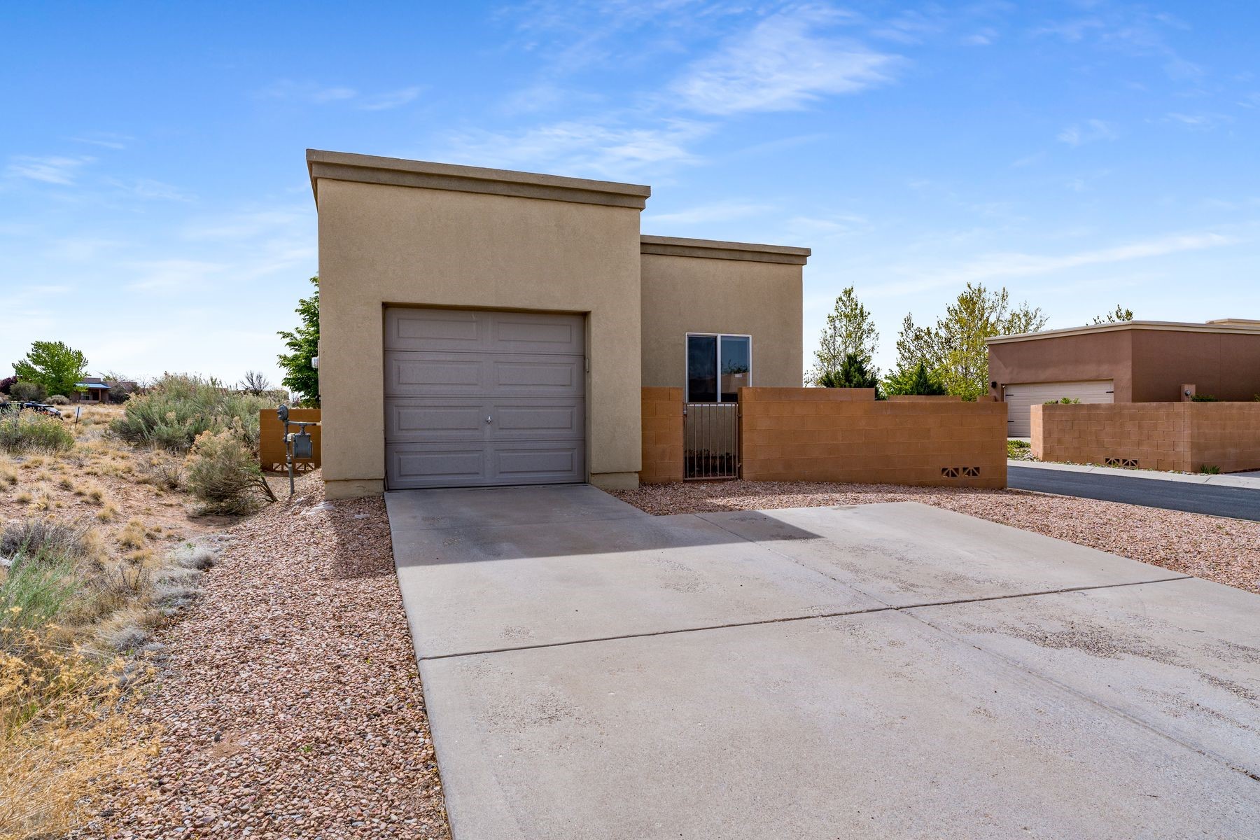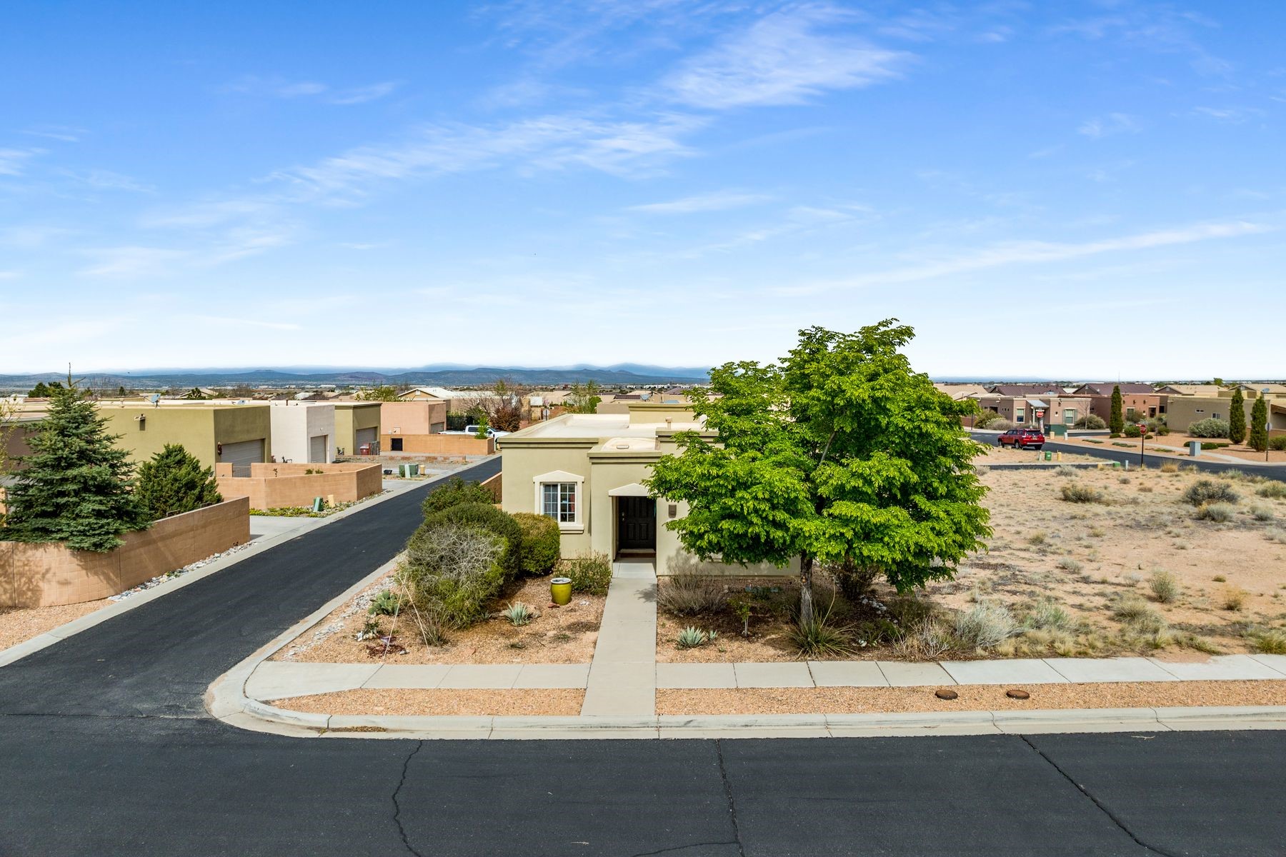 Cozy, single-level Rancho Viejo home built in 2009, offering 3 bedrooms, 2 bathrooms, and 1,227 square feet with good separation between the primary suite and guest bedrooms. Located on a .09-acre lot with quick access to I-25 and just 10 minutes to southside Santa Fe shopping and restaurants, this home combines efficient design with everyday convenience. The interior features engineered wood and laminate flooring, with carpet only in the guest bedrooms. The living area is filled with natural light and connects easily to the kitchen and dining spaces for comfortable daily living. The kitchen includes granite countertops, abundant cabinetry, and a full suite of appliances, all replaced in 2024. The layout supports both functionality and ease of use, all centered around the main living area. The primary bedroom suite is positioned separately from the guest bedrooms, offering privacy and flexibility. Two additional bedrooms and a second bathroom accommodate guests, workspace, or additional living needs. Outdoor living is enhanced by French doors leading to a walled-in portal with a manageable garden, providing a sheltered and usable space for dining, relaxing, or enjoying Santa Fe's climate. The manageable .09-acre lot offers low-maintenance outdoor space with room for personalization. Comfort systems include forced air heating and refrigerated cooling. A new TPO roof installed in 2025 includes a transferable warranty. Additional features include a one-car garage and efficient single-level layout. Located within the beautiful Rancho Viejo community, known for its peace and quiet and extensive network of walking trails and open space, this property offers a balance of accessibility, low-maintenance living, and proximity to schools, colleges, and amenities.