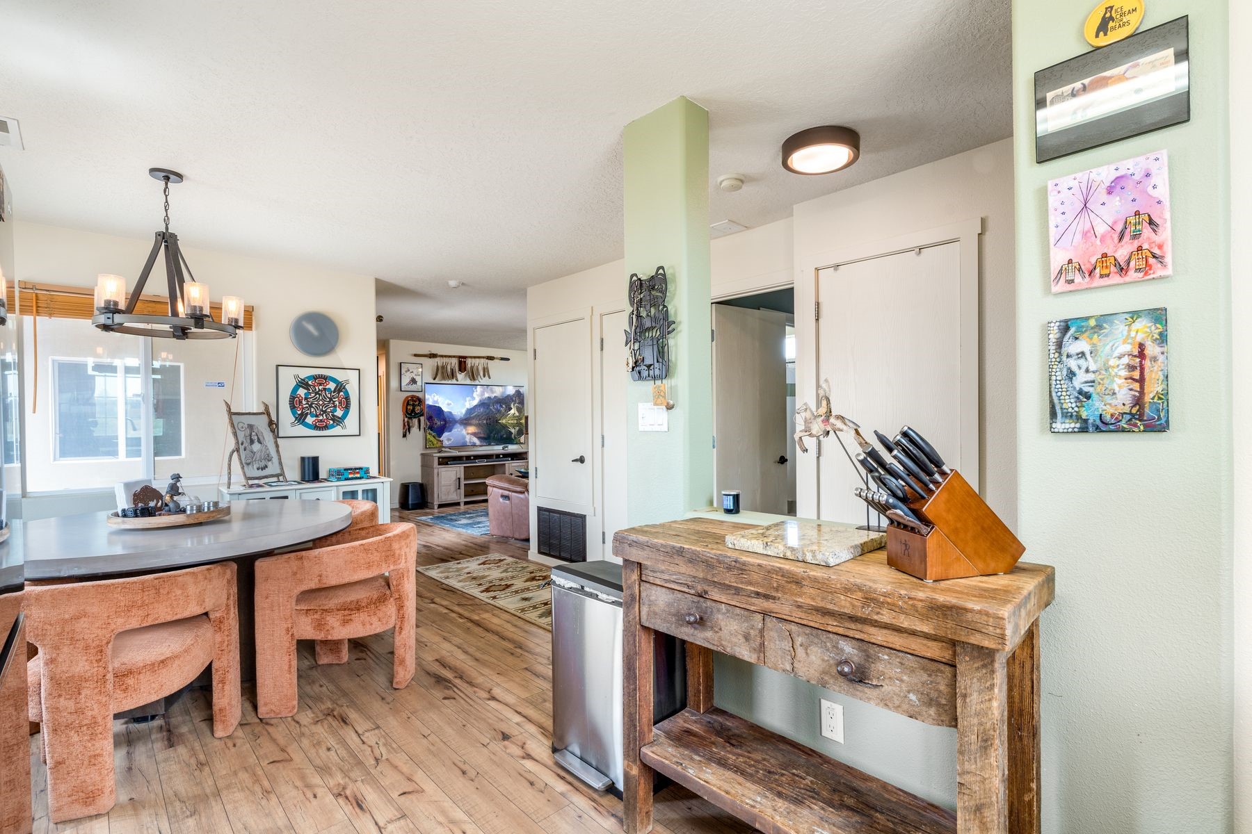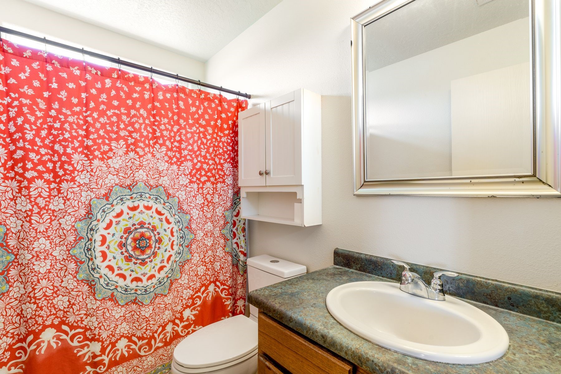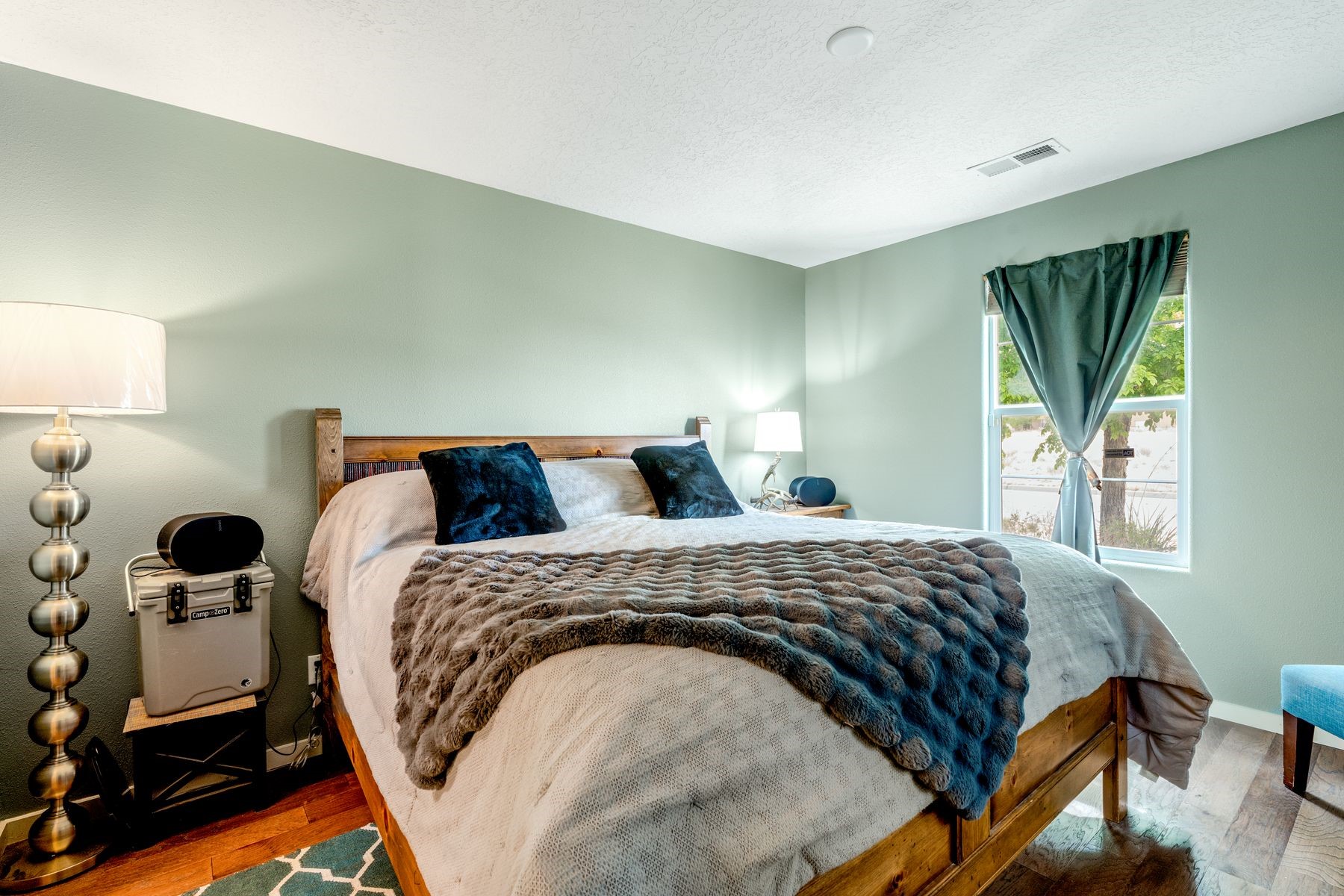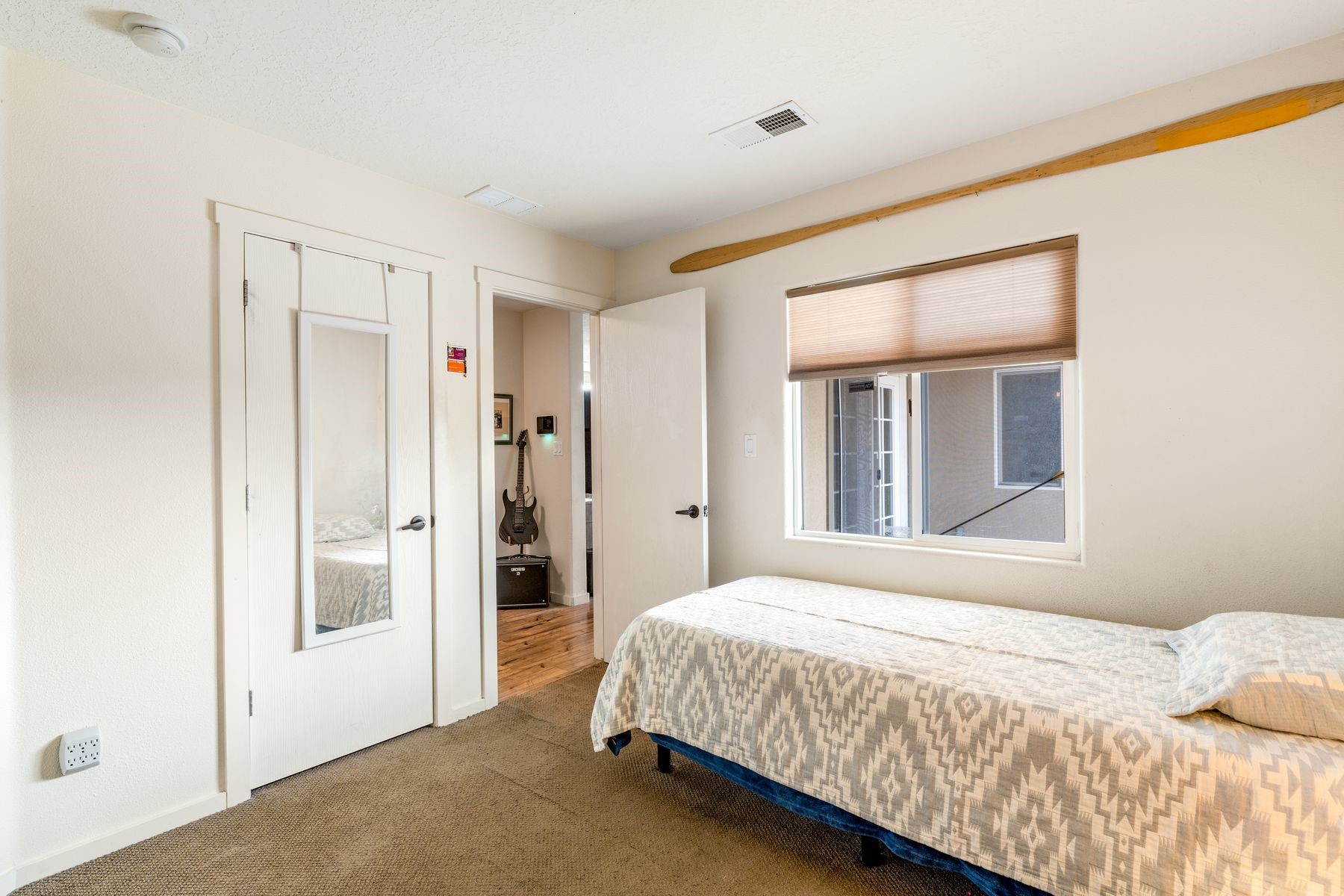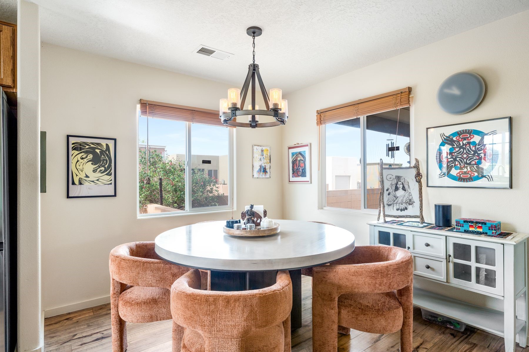 Cozy, single-level Rancho Viejo home built in 2009, offering 3 bedrooms, 2 bathrooms, and 1,227 square feet with good separation between the primary suite and guest bedrooms. Located on a .09-acre lot with quick access to I-25 and just 10 minutes to southside Santa Fe shopping and restaurants, this home combines efficient design with everyday convenience. The interior features engineered wood and laminate flooring, with carpet only in the guest bedrooms. The living area is filled with natural light and connects easily to the kitchen and dining spaces for comfortable daily living. The kitchen includes granite countertops, abundant cabinetry, and a full suite of appliances, all replaced in 2024. The layout supports both functionality and ease of use, all centered around the main living area. The primary bedroom suite is positioned separately from the guest bedrooms, offering privacy and flexibility. Two additional bedrooms and a second bathroom accommodate guests, workspace, or additional living needs. Outdoor living is enhanced by French doors leading to a walled-in portal with a manageable garden, providing a sheltered and usable space for dining, relaxing, or enjoying Santa Fe's climate. The manageable .09-acre lot offers low-maintenance outdoor space with room for personalization. Comfort systems include forced air heating and refrigerated cooling. A new TPO roof installed in 2025 includes a transferable warranty. Additional features include a one-car garage and efficient single-level layout. Located within the beautiful Rancho Viejo community, known for its peace and quiet and extensive network of walking trails and open space, this property offers a balance of accessibility, low-maintenance living, and proximity to schools, colleges, and amenities.