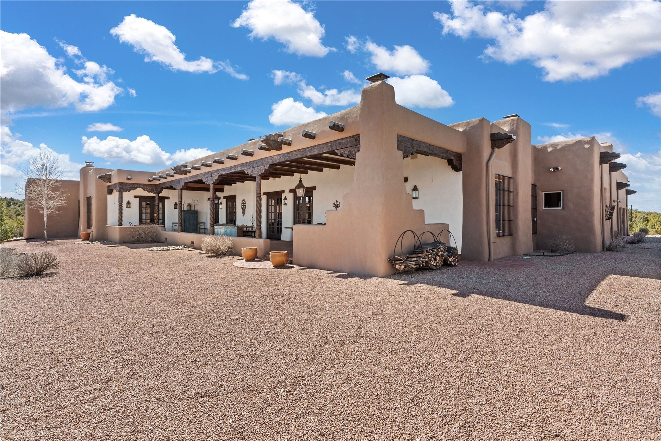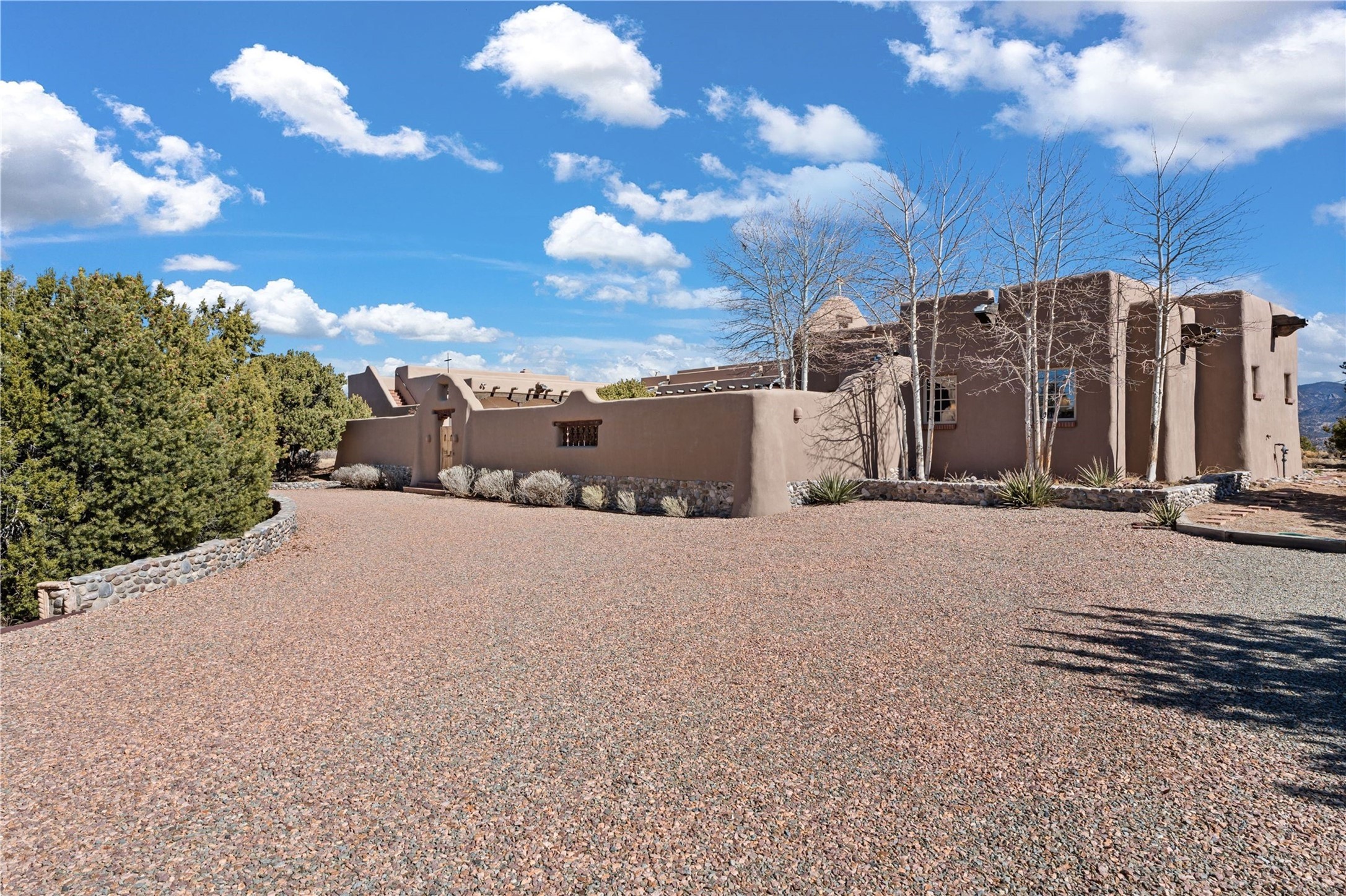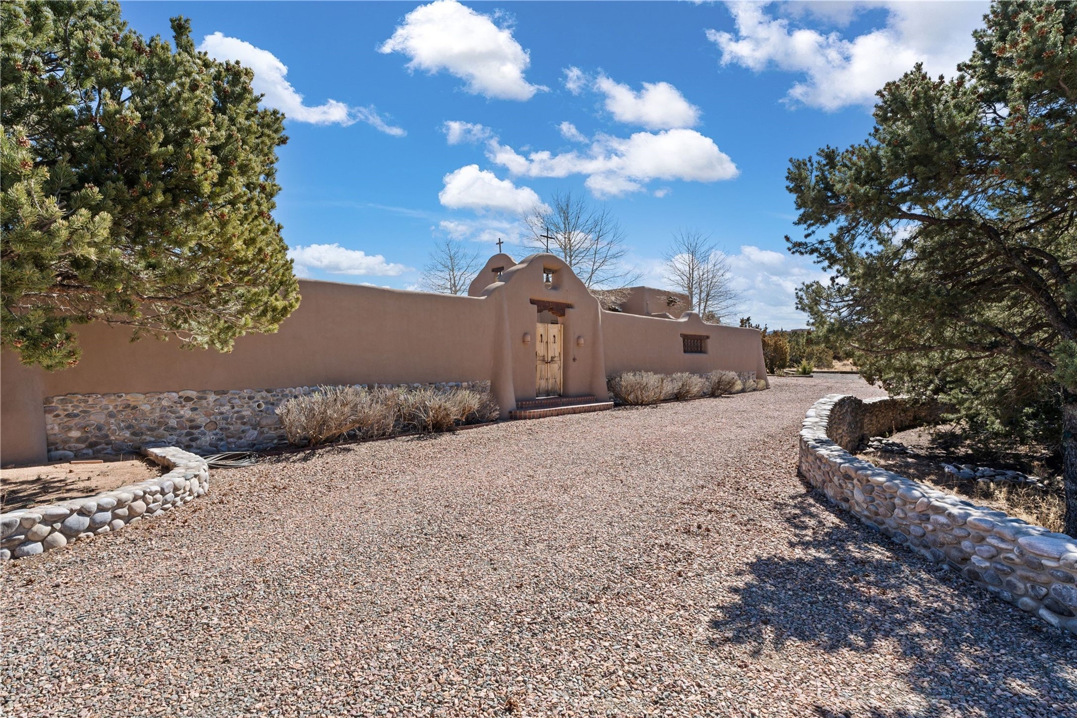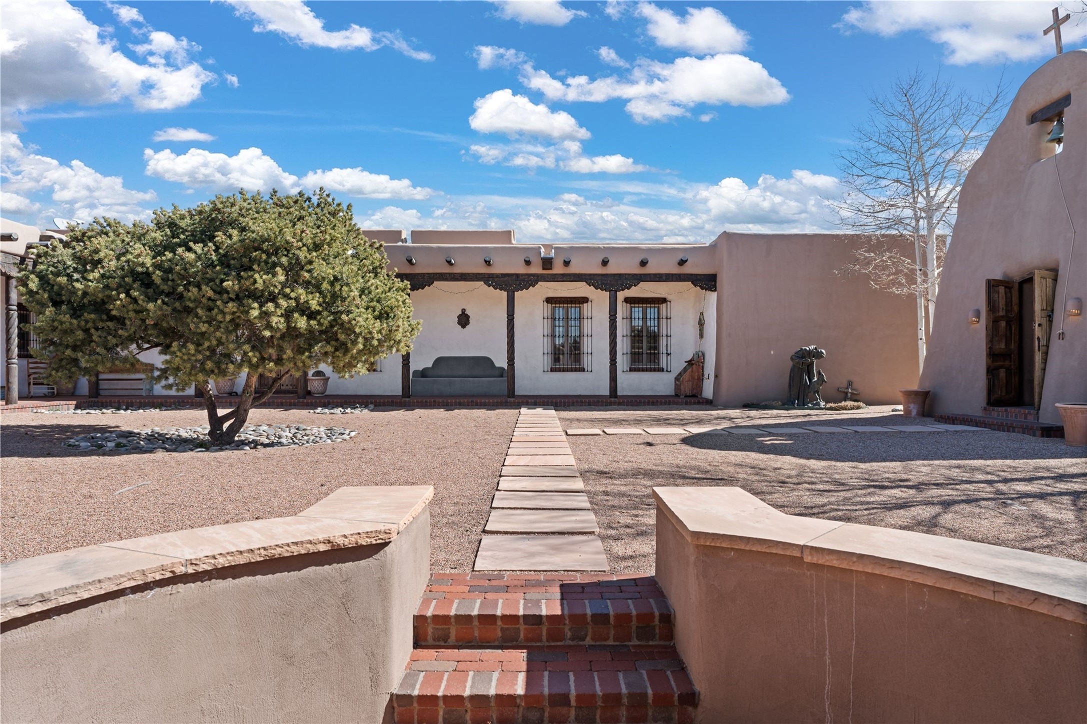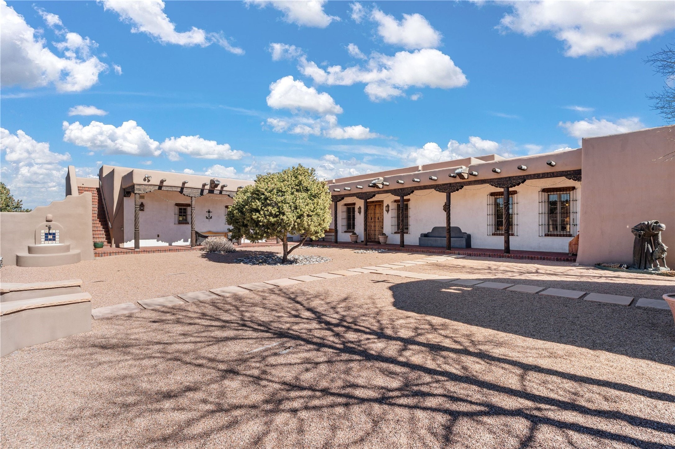 Reminiscent of a colonial hacienda, this impressive estate offers privacy, views, an adobe walled-in main residence and casita, plus a studio/guest house. Beautifully sited on nearly 10 acres (comprised of 2 separately deeded lots), and featuring the highest quality construction (double adobe in the main house). The Main house consists of 2 bedroom suites plus 2 half baths; the Casita consists of 2 bedrooms and 2 baths, and the Studio/Hogan has 1 bedroom,1 bath. There is an expansive portal and a roof top deck, 7 Fireplaces, private well and 12' and 15' Ceilings in public areas. This property is one of Santa Fe's finest.