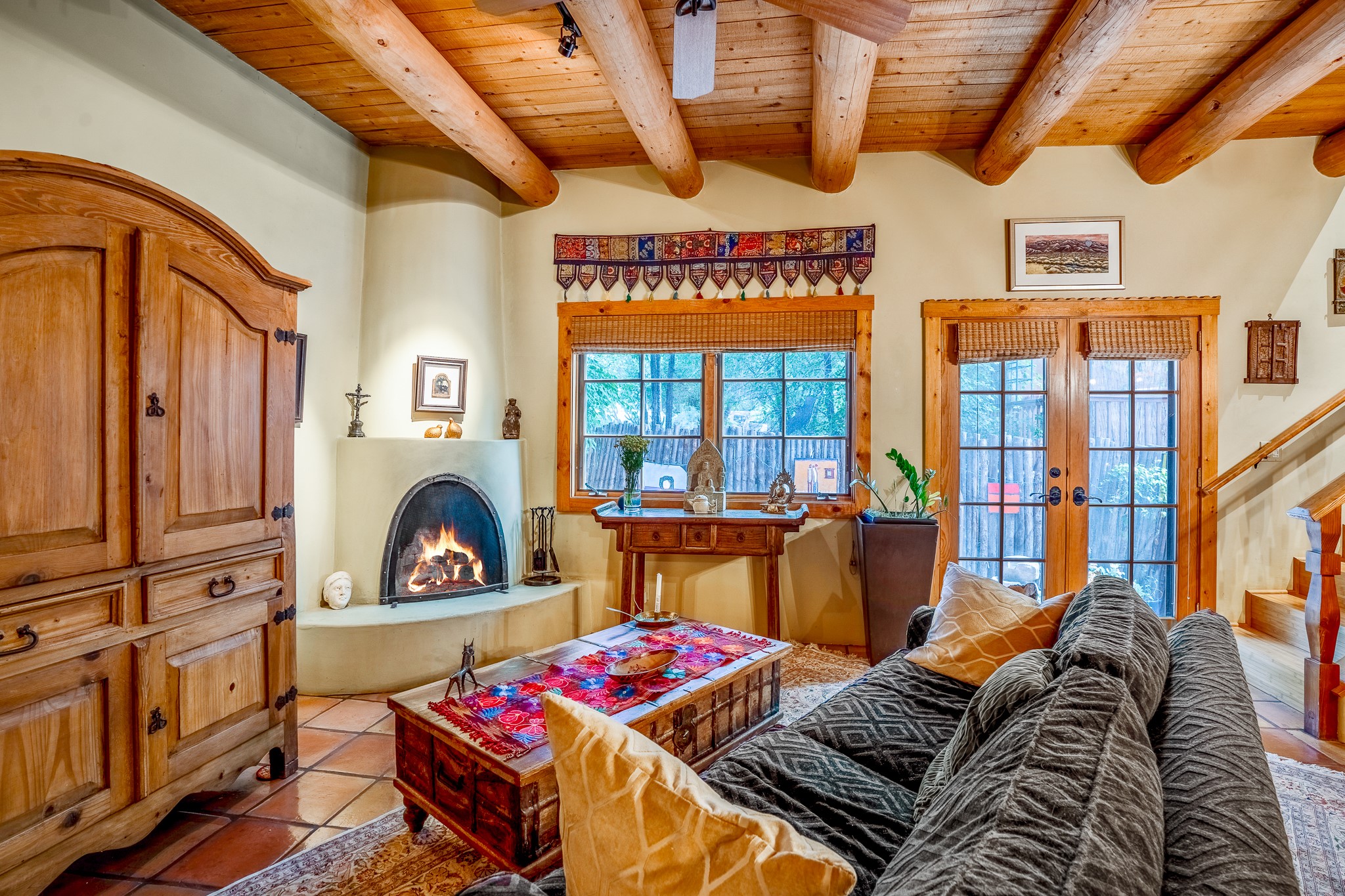 Within the city limits, the Santa Fe City Northeast neighborhood combines the convenience of location with the pleasures of quiet living. On every tree-lined street are examples of newer, award-winning architecture and well-established, older adobes. In addition to the famous Plaza, this area includes all the land reaching up to the Jemez and the Sandias. Newer developments appear on your left and right as you climb in altitude into the tree-studded Sangre de Christos. Historically this area was for many years the center of life in Santa Fe. On one side of the Plaza stretches the Palace of the Governors. Constructed in the early 17th century as Spain’s seat of government, the Palace of the Governors in Santa Fe chronicles and documents the history of the city, as well as New Mexico and the region. Stroll down East Palace Avenue past galleries, shops and lovely hotels.
