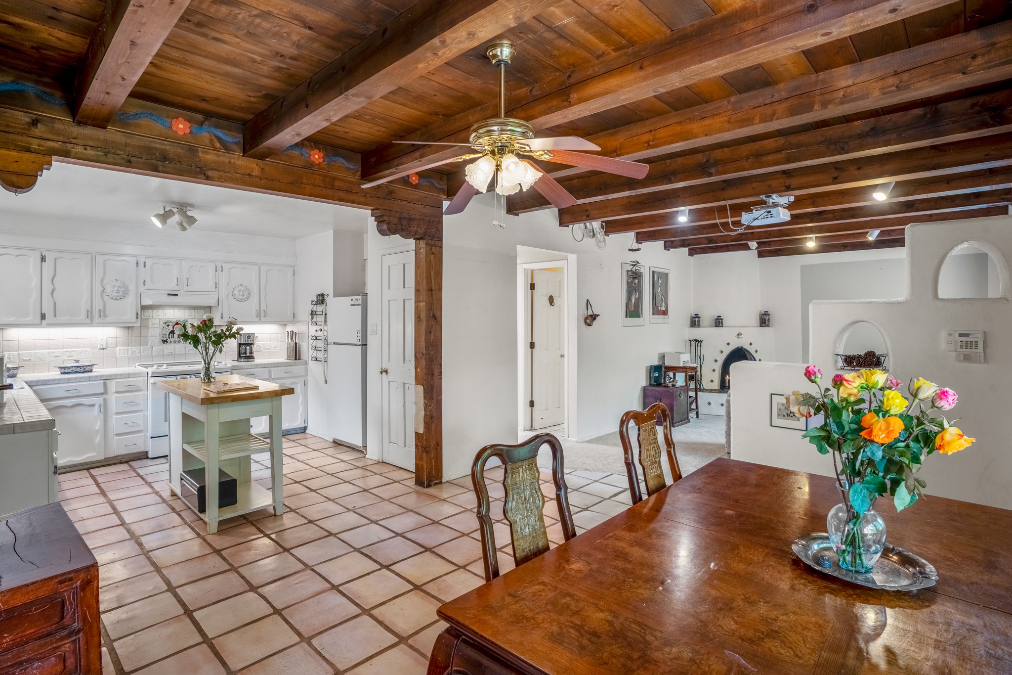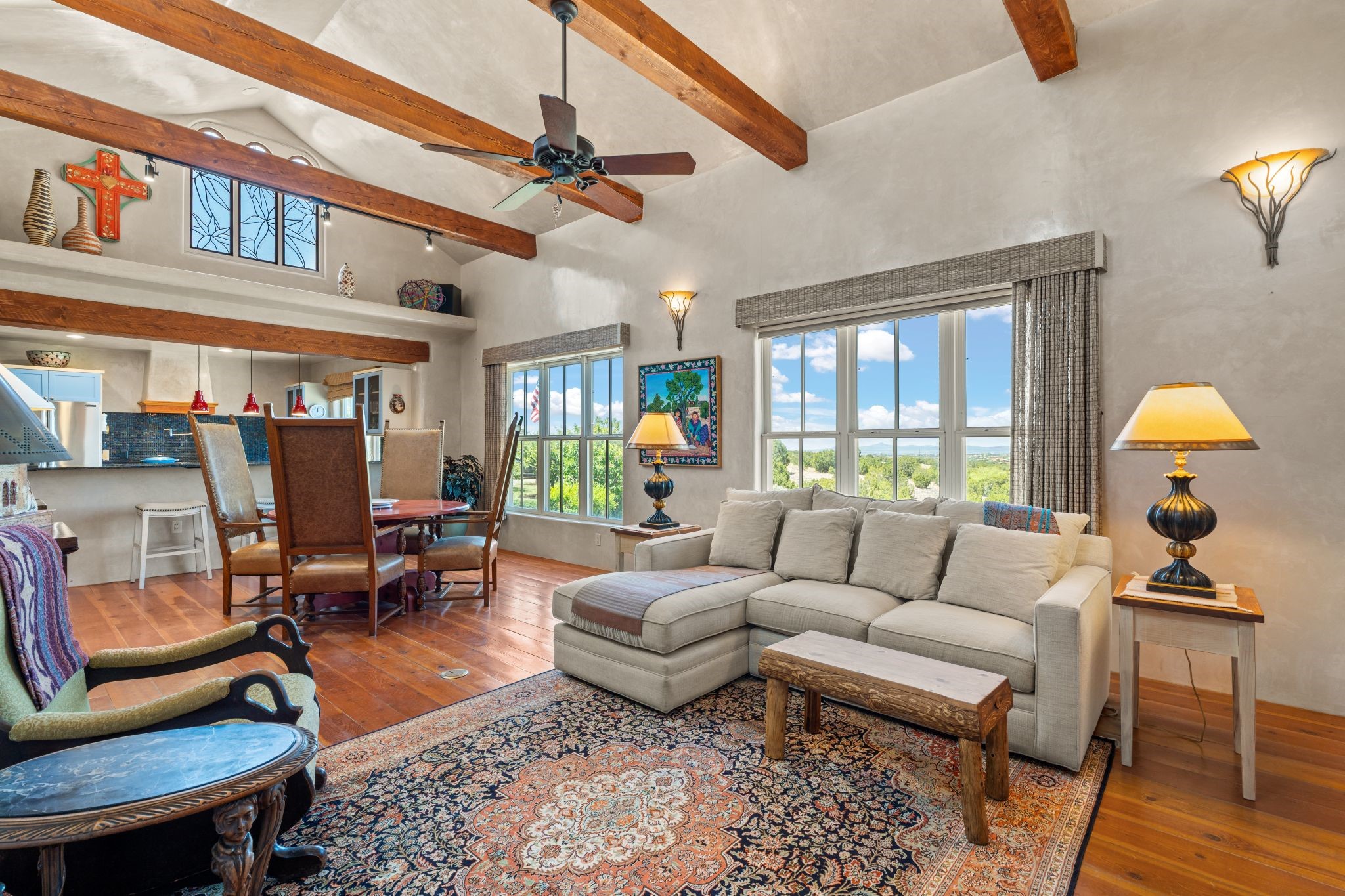 Within city limits, the northwest area of Santa Fe includes one of the most affordable, family areas – Casa Solana. With beautiful mature trees, sidewalks and paved streets, Casa Solana has a real neighborhood atmosphere. Gonzales Elementary is within walking distance to all and the Casa Solana shopping area is a treat. The homes were built in the 1960’s by developer Allen Stamm and all include vigas, hardwood floors, fireplaces and solid construction. As you travel down West Alameda, the homes begin to spread out a bit. Horse farms dot the landscape. Newly-constructed homes appear on large open tracts. Any left hand turn takes you down to the Santa Fe River and any right hand turn delivers you into the hills above Santa Fe. Some lots in the hills offer 360 degree views, some a beautiful view of the Santa Fe city lights. Includes Zocolo and Santa Fe Estates.