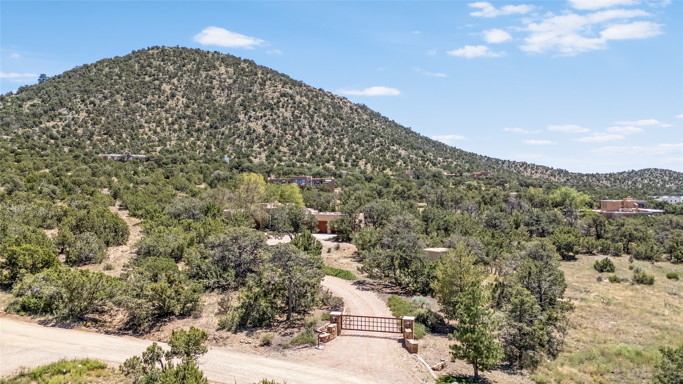 As the Old Santa Fe Trail winds north, these lovely, wooded neighborhoods run alongside. Located in the foothills of the Sangre de Cristo Mountains, the lower elevations provide rolling hills of pinon and juniper with the high-elevation nestled in mountainous terrain. All have wonderful views of the Sandias to the south and Santa Fe’s famous sunsets. Most lots start at 2.5 acres and some are over ten. The area includes Cloudstone, La Vista, Coyote Mountain Road, Mercer, Double Arrow Road, La Barberia, Overlook I and II, north and south of Old Santa Fe Trail from the Camp Stoney cutoff.