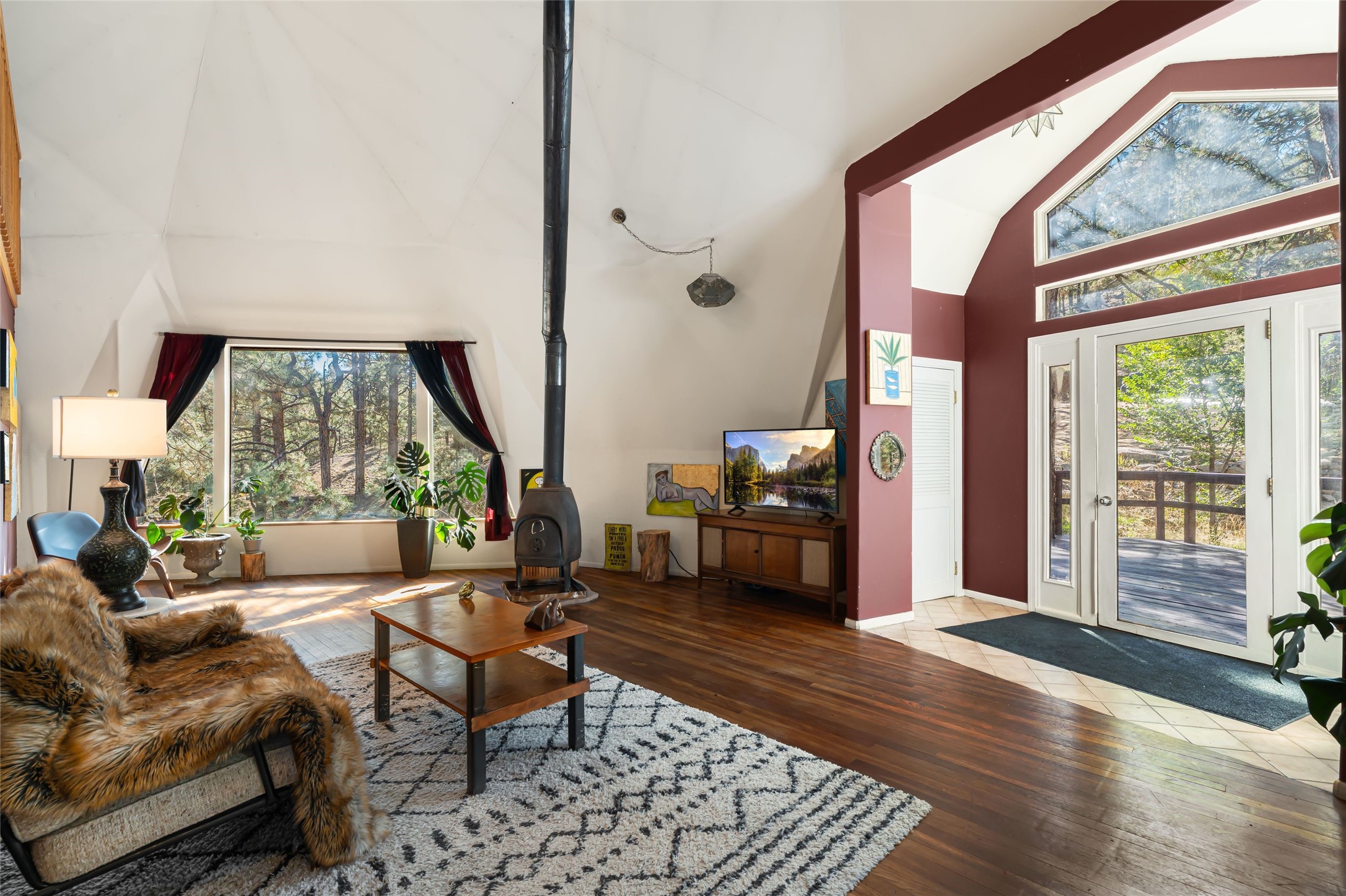 As the Old Santa Fe Trail winds north, these lovely, wooded neighborhoods run alongside. Located in the foothills of the Sangre de Cristo Mountains, the lower elevations provide rolling hills of pinon and juniper with the high-elevation nestled in mountainous terrain. All have wonderful views of the Sandias to the south and Santa Fe’s famous sunsets. Most lots start at 2.5 acres and some are over ten. The area includes Cloudstone, La Vista, Coyote Mountain Road, Mercer, Double Arrow Road, La Barberia, Overlook I and II, north and south of Old Santa Fe Trail from the Camp Stoney cutoff.