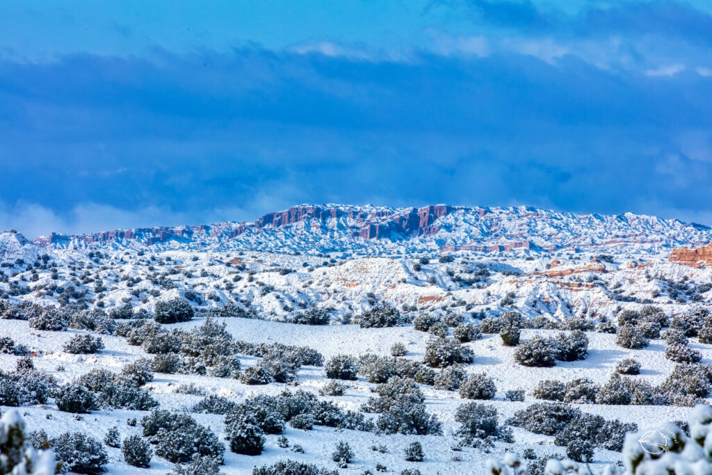 For those wanting flat terrain, the Santa Fe Rail Trail becomes a beautiful winter walk as the snow blankets the desert, creating quiet, meditative landscape views.